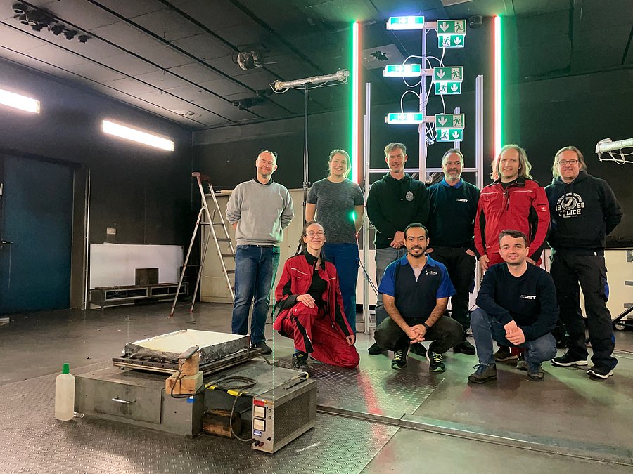 Im Rahmen des von der DFG geförderten Projekts NextVIS, haben wir weitere Experimente im Rauch durchgeführt. Die Experimente fanden zusammen mit den Kollegen (insbesondere Torsten Schultze) von der Uni Duisburg-Essen in deren Branderkennungslabor statt. Diesmal waren auch die Kolleg:innen des Ingenieurbüros BCL aus Leipzig dabei und haben deren Extinktionsmessgeräte eingesetzt.